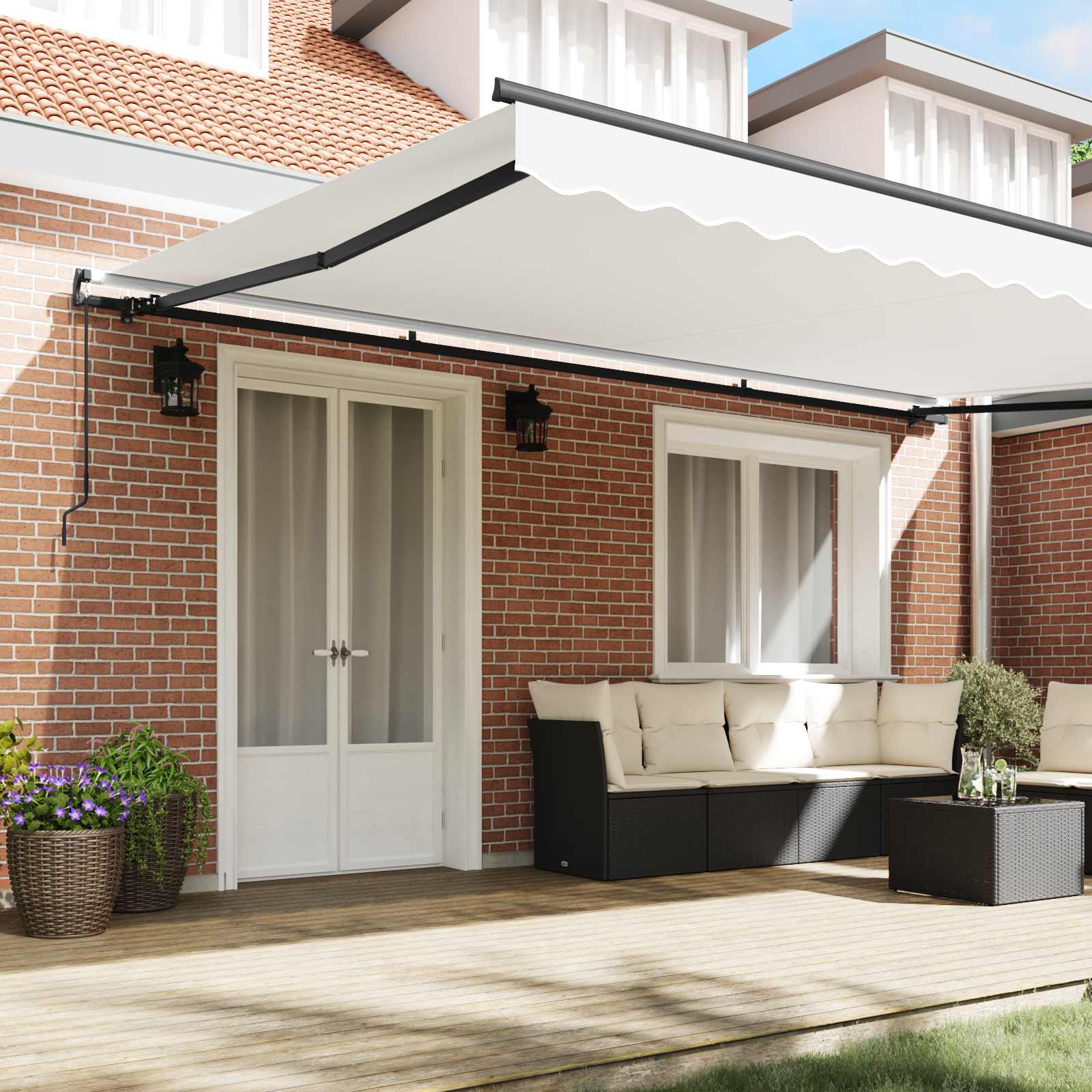 - Sodobna zasnova: Naša zložljiva tenda združuje stil in funkcionalnost ter izboljšuje zunanji videz s čistimi linijami in enostavno integracijo v različne arhitekturne sloge.