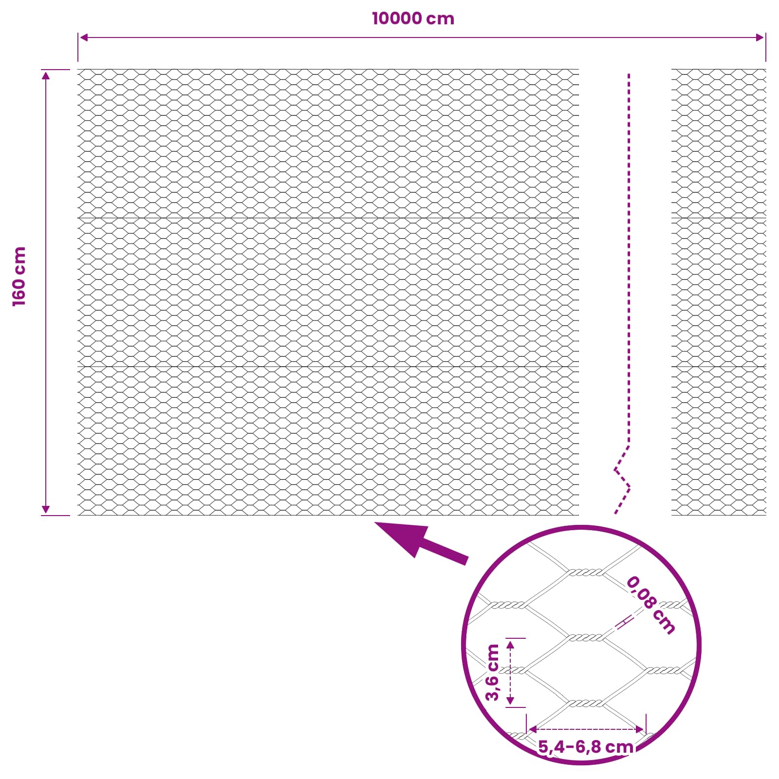 - Splošne dimenzije: 100 x 1,6 m (D x Š)